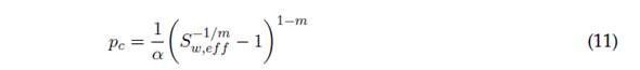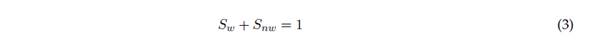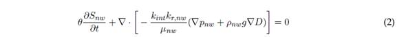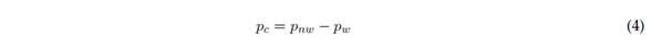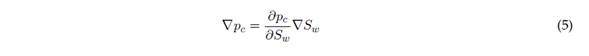 Las expresiones anteriores simplifican las ecuaciones. (1) y (2), eliminando dos incógnitas, y la ecuación de conservación de masa del fluido en los poros solo depende de p nw y S nw . Dado que la presión capilar se rige por S w , el término capilar, ∇p c , se puede expresar como la ecuación (5):