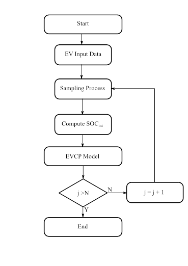 In probabilistic methods, it is possible to find many studies that have used individual probabilistic distribution to model the EV charging demand. For example, these studies have employed Gaussian (Sun et al., 2015), Weibull (Li & Zhang, 2012), lognormal (Khoo et al., 2014), exponential distributions (Khoo et al., 2014), mixed probability distributions (i.e, a mixture of Gaussian distributions) (Flammini et al., 2019), or non-parametric methods (Chung et al., 2018; Chen et al., 2020) to determine the EV charging demand. However, the most common and used technique is Monte Carlo Simulation (MCS), which is conducted for a large number of samples generated using the probability density functions from several input variables (Li & Zhang, 2012; Su et al., 2019). These input variables can be home arrival/departure time, daily travelling distance/EV initial battery SoC, EV type, EV battery capacity, or EV recharge probability (Su et al., 2019). Many MCS applications can be found in the literature. For example, Grahn et al. (2011) analyzed the impact caused by the EV charging demand based on uncontrolled and controlled charging scenarios on the distribution transformer hot-spot temperature and loss of life by using a thermal model. Similarly, Tekdemir et al. (2017) also evaluated the effects of EVs on distribution grids. The authors used the MCS and Weibull probability distribution to model the EV charging demand, and they also assumed correlated loads on the grid. Under different conditions, Ul-Haq et al. (2018) employed MCS to develop an EV charging pattern model that considers the vehicle class, battery capacity, SoC, driving habit/need, plug-in time, mileage, recharging frequency per day, charging power rate, and dynamic EV charging price. In Ahmadian et al. (2015), a probabilistic approach is proposed to model the EV load demand considering home arrival time, home departure time, deriving distance, nonlinear characteristics of the battery charge, and different vehicle types. The authors used historical information from the National Household Travel Survey to obtain the probability distributions. On the other hand, in possibilistic approaches, we can find that authors such as Tan and Wang (2014) have proposed a load profile for EVs, which considers the arrival time, departure time, daily distance travelled, and vehicle parameters in order to obtain a stochastic model of driving patterns based on fuzzy logic theory. Hussain et al. (2019) introduced a fuzzy inference mechanism to determine an appropriate charging, discharging, or withholding decision for EVs. This scheme also considers the available power from the smart grid, arrival time, departure time, SoC, and the required stay time of EVs. Ali et al. (2017) proposed a hybrid fuzzy-MCS method where the parameters are modeled according to either probabilistic or possibilistic approaches. For example, the travelling distance is modeled using a fuzzy triangular membership function, while the arrival and departure times are modeled by Weibull probability distributions using MCS.