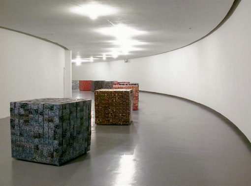 El mismo recurso temático y formal reaparecerá en Cuarto mundo, el proyecto que Ávila llevó a cabo tanto en el Premio Luis Caballero en Bogotá (2003) como en la Bienal de Sao Paulo (2004). “Cuarto mundo”, un término proveniente de las ciencias sociales, ha sido utilizado para describir los horizontes más allá de la pobreza, la marginación extrema, una especie de esfera irrecuperable y ajena, un inframundo, un lugar más allá de la desesperanza. En la obra de Ávila ese cuarto mundo está formado por cubos de cubos, monolitos-mosaico en tristes grises, ensamblajes de imágenes de barriadas populares de diferentes ciudades del mundo, fotografías de autopistas que se cruzan y no llevan a ningún destino. Ávila se valía de un recurso “warholiano”, la repetición modular y sistemática de la imagen, en busca de la despersonalización y en función de la acentuación de nuevos ritmos y asociaciones visuales. En Cuarto mundo concretaba reflexiones sobre lo palpable, lo sólido y lo material, evidenciando el orden de una sociedad que privilegia lo intangible sobre lo real y lo abstracto sobre lo material, ocupándose de un problema mundial, el aplastamiento del espacio social por la racionalidad económica.