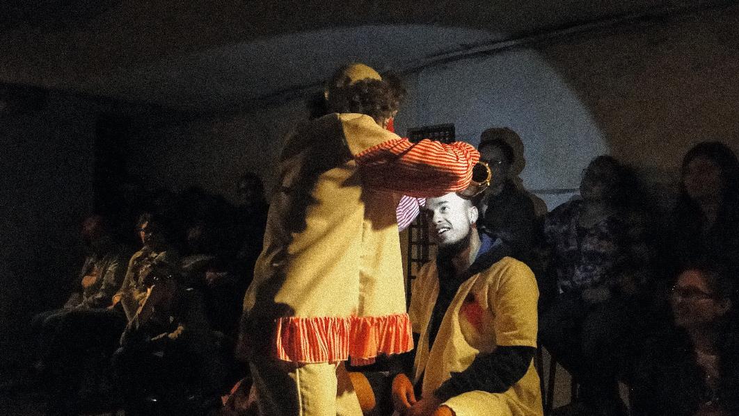 Pero también es cierto que en la actuación el cuerpo se transforma por medio de la máscara, del vestuario, del disfraz y del maquillaje para satirizar, escarmentar e incluso ridiculizar, pues no es ajeno a la crítica y a la manera como se impone la identidad en el presente; una identidad que más que ver con el individuo y sus necesidades, tiene que ver con el producto y el mercado, el comercio y ordenamiento económico. El cuerpo entonces toma postura y vuelve a ser el centro del acontecimiento o del suceso, ya no solo como complemento de la máquina y del aparataje, sino como lugar del acontecimiento.