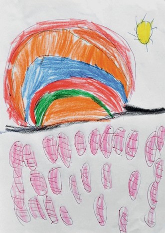 Figura. 2. Dibujo de un niño de 4 años. Lápiz de colores y bolígrafo sobre papel.