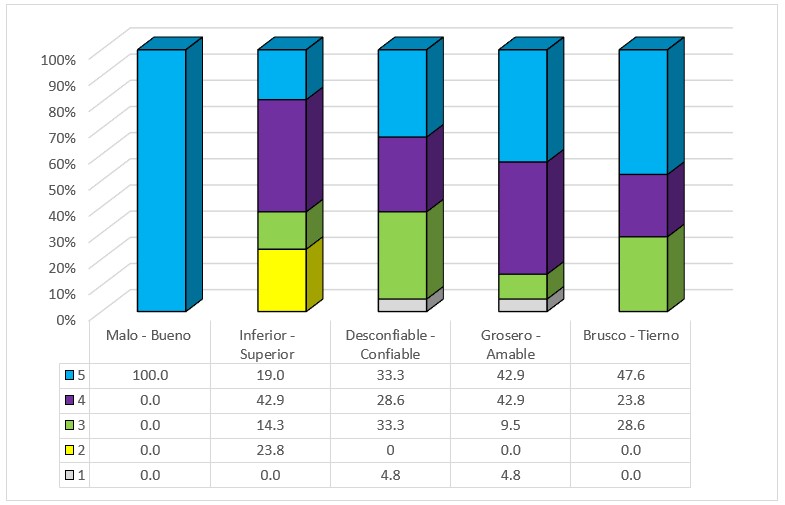 En cuanto a las variables, se seleccionaron cinco independientes: atractivo personal, atractivo social, nivel socioeconómico, redes sociales . aceptabilidad y orgullo cultural y lingüístico. Cabe señalar que los binomios semánticos propuestos a los informantes se refieren a tres dominios ya empleados en las investigaciones de Blas Arroyo (citado en González Martínez, 2008 ). El atractivo personal se analizó a partir de los binomios: malo/ bueno, inferior/superior, desconfiable/confiable, grosero/amable, brusco/tierno. El atractivo social, a partir de: viejo/joven, aburrido/divertido, triste/ alegre, feo/bonito, confuso/claro, lejos de mi región/ cerca de mi región (geográfica), raro/conocido, desconfianza/confianza. El estatus socioeconómico se estudió a partir de las polaridades semánticas: mal hablado/bien hablado, pobre/rico, tonto/inteligente, y se adaptó el léxico de los diferenciales semánticos tomando en cuenta el vocabulario accesible al contexto etario y cultural de los informantes, y a la variedad de español hablada en el suroccidente colombiano. Por último, las redes sociales y la aceptabilidad y el orgullo cultural y lingüístico se indagaron a partir del cuestionario y de la entrevista semidirigida. Es importante mencionar aquí que en la variable redes sociales se incluyó la oposición namtrik/español puesto que se relaciona con las actitudes lingüísticas reveladas en el entramado de relaciones de los miembros de la comunidad misak, por lo cual la oposición entre la variedad de español hablada por los indígenas y las variedades habladas en el exterior resultaría irrelevante. Por su parte, la variable aceptabilidad y orgullo cultural y lingüístico se analizó a la luz de sus componentes cognitivos y afectivos.