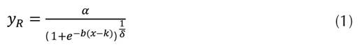 (1) Upper asymptote clarifies that it was not reached, since the plants were in a vegetative stage and in active growth. In this case, it is related to the maximum growth achieved. (2) Slope of the curve. (3) Inflection point indicating the change in growth rates. (x) Plant age in years.