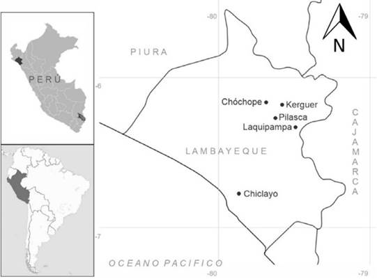 Collection site: Pilasca (Salas, Lambayeque), Chiclayo (Chiclayo), and Kerguer (Lambayeque), Peru