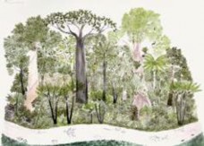 Dibuja una palmera llamada azaid y una más de nombre yabarí que crece a la orilla del río. Dibuja un árbol sangre de toro y una palma a la que ellos llaman bombona, ‘de tronco delgado pero barrigona’. Dibuja también el árbol de cacao silvestre, uno de algodón en la ribera y otro más de marañón 25.”