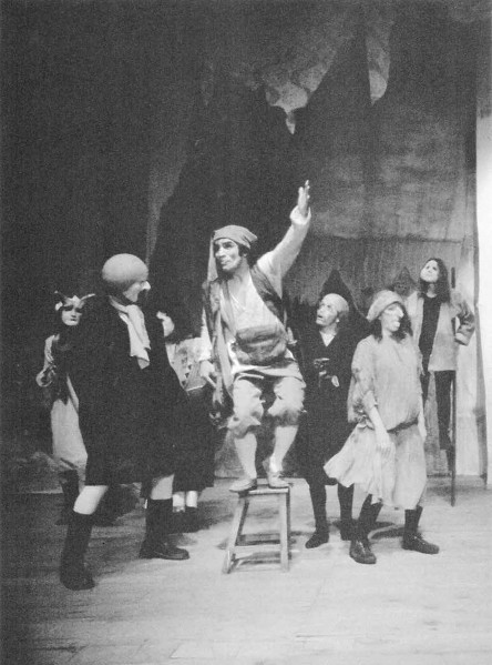 Diálogo del Rebusque. Santiago García. Teatro La Candelaria (1981). En la foto: Fernando Peñuela, Hernando Forero, Ignacio Rodríguez, Inés Prieto, Adelaida Nieto, Patricia Ariza, Nohora Ayala, Beatriz Camargo. Foto Luis Cruz.