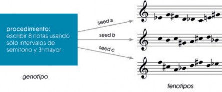 Figura 10. Ejemplo de un genotipo musical el cual tiene 3 semillas1 producen 3 fenotipos. Imagen tomada de López-Montes (2013).
