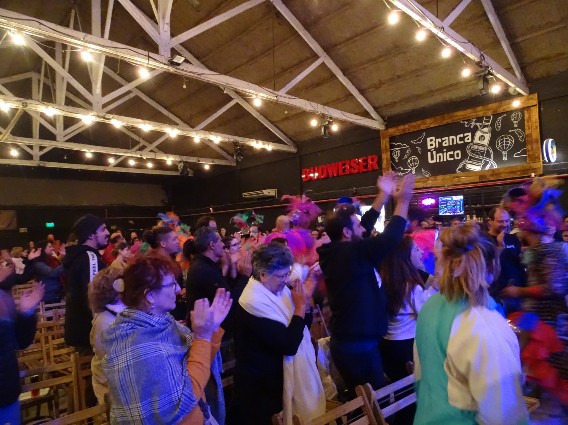 Regresamos el martes 21 de febrero de 2023 en horas de la noche al Teatro del Sol donde murgas, revistas, comparsas, humoristas, parodistas, músicas de candombe, maquillajes, productores, vestuarios, burlas, sátiras, risas, familias, patrimonios, creadores, artistas, artesanos, amigos y hasta degustación de churros (masa dulce frita), pasados con un traguito de whisky, nos llenaron el cerebro de endorfinas y nos hicieron sentir el placer de haber escogido como carrera de vida el estudio de la fiesta.