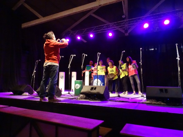 A las 8 p.m. se dio inicio a la presentación de grupos con la intervención del Club del Ritmo, un grupo de estudiantes de percusión de la Escuela de Artes y Artesanías Dr. Pedro Figari, dirigidos por el amigo músico Luis Gutiérrez, quienes fueron invitados por la Red de Escenarios Populares del carnaval. Además de su buen ritmo, para mí lo másdestacado fue la manera como lograron una interacción con el público asistente.