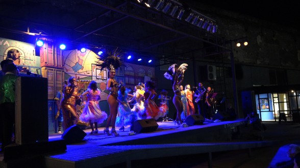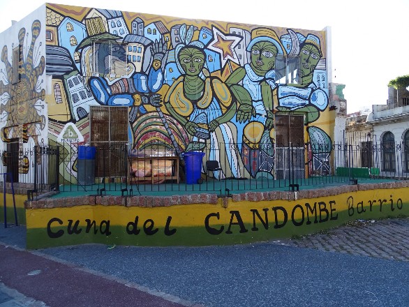 El 19, dos días después, volví al Tablado del Museo donde disfruté de otra versión de los grupos, entre otros, las denominadas comparsas que me tenían a la expectiva dada su relación con lo afrouruguayo, con los tambores, el candombe y con sus escenografias. Esa noche pude disfrutar de la comparsa Yambo Kenia y de su espectacular montaje para tarima. He visto comparsas de calle en varias par- tes del mundo, pero nunca había disfrutado de una comparsa en tarima donde el toque de sus tambores todavía resonara en mi cerebro días después. Son comparsas de negros y de lubolos (blancos pintados de negros), acompañados de las danzas de mujeres que construyen un universo de lo bello. El candombe es su llamado mayor.