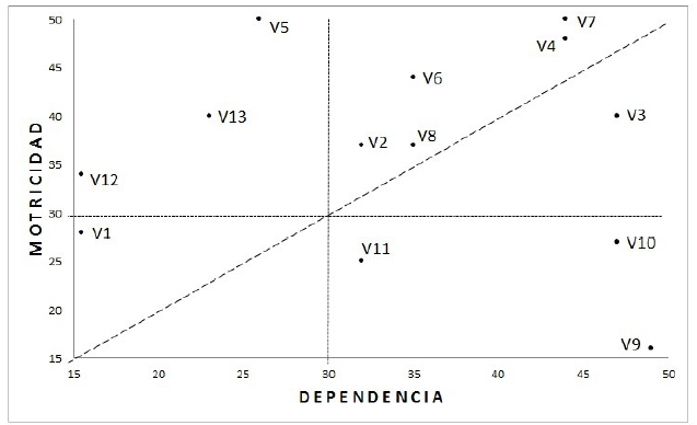 Figura 1: Motricidad y dependencia del sistema estudiado.