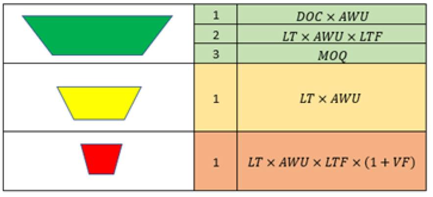 Una vez se tiene la información completa por cada una de las referencias, se procede a calcular las zonas roja, amarilla y verde para consolidar los niveles del buffer (ver Figura 2).