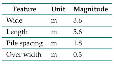In this model, the piles had similar geometric characteristics, which are described in Table II. Pile 1 was considered defective and replaced with several micropile arrays. The methodology proposed by Poulos and Davis was used to evaluate the loading variables of the piles and micropiles, as well as their settlement.